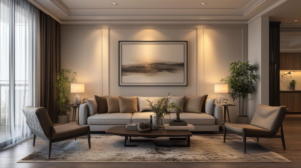 L’éclairage naturel joue un rôle déterminant dans la disposition de vos cadres. Observez attentivement comment la lumière du jour traverse votre salon à différents moments de la journée. Les fenêtres orientées plein sud inondent la pièce de luminosité, ce qui peut créer des reflets gênants sur le verre des cadres si ceux-ci sont placés directement en face. Pour contourner ce problème, privilégiez des verres spéciaux comme le verre musée ou le plexiglas qui limitent les reflets indésirables. Les zones recevant une lumière indirecte conviennent parfaitement aux photographies précieuses que vous souhaitez conserver dans les meilleures conditions.